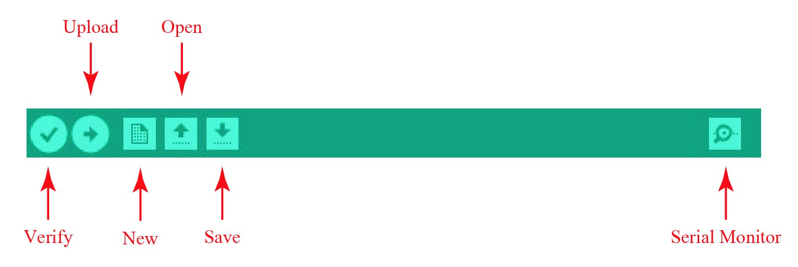 6. Serial Monitor Button Opens the Serial Monitor window (only works when The board is connected to the computer).