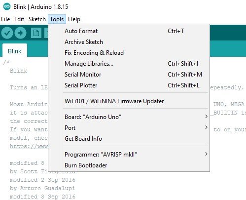 5. Burn Bootloader is used to load the Bootloader to the Arduino board.